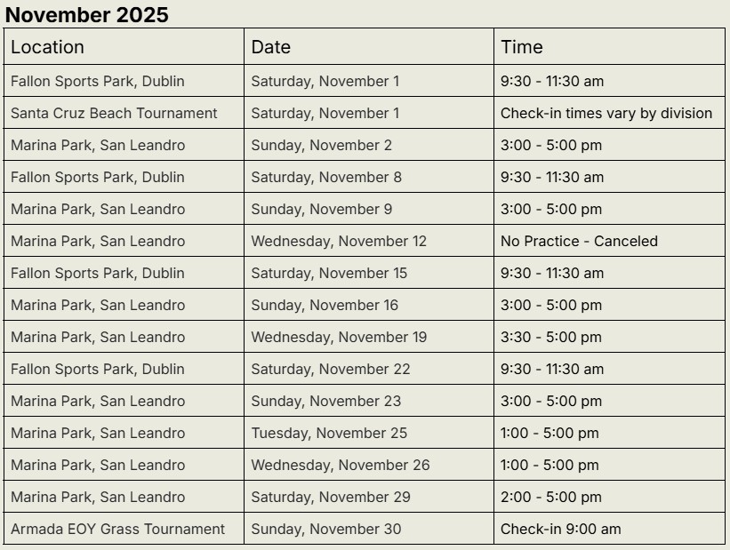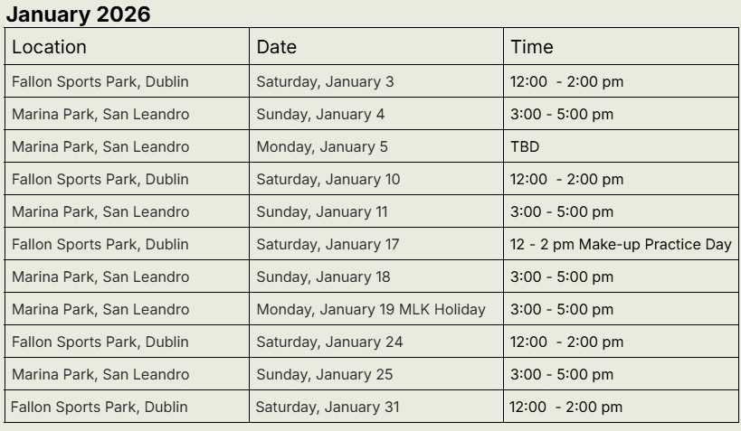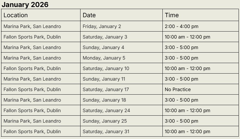 Our goal is to help our athletes improve their skills and techniques in a fun and challenging outdoor environment. We practice in San Leandro and Fremont. Join us and let’s go!